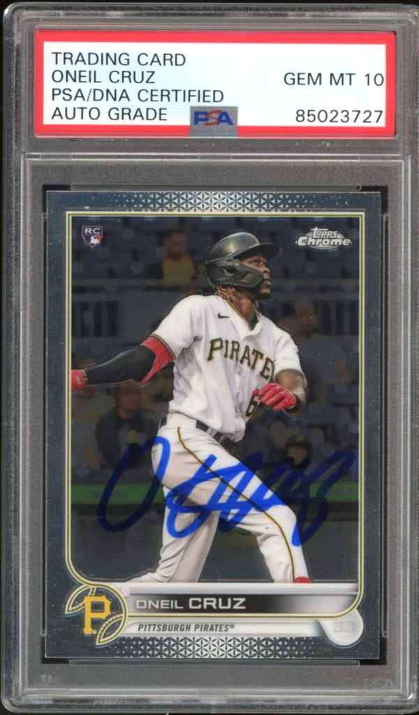 2022 Topps Chrome #128 Oneil Cruz Pirates RC On Card PSA/DNA Auto GEM MINT 10