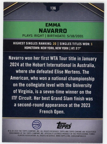2024 Topps Graphite Tennis Emma Navarro Blue Refractor /50 #136