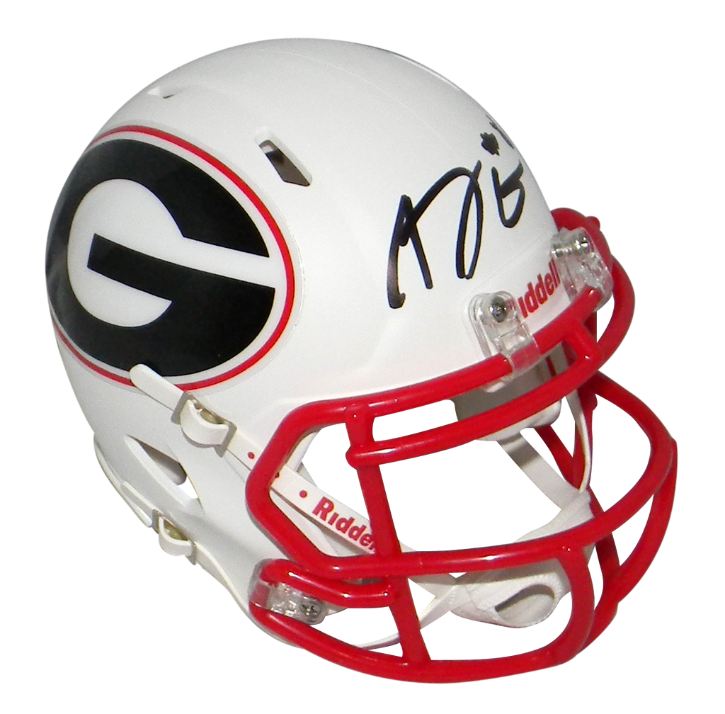 AJ Green, former All-American wide receiver for the Bulldogs, has hand signed this Georgia Riddell Speed AMP mini helmet at a private signing. This item comes with a certificate of authenticity (COA) from Beckett Authentication Services and was signed in the presence of one of their representatives. You will receive a serial-numbered COA along with a matching serial-numbered sticker on the helmet. The authenticity can be verified online by entering the serial number.Item pictured may not be the exact item you will receive. It will be similar quality, and we guarantee your satisfaction.
