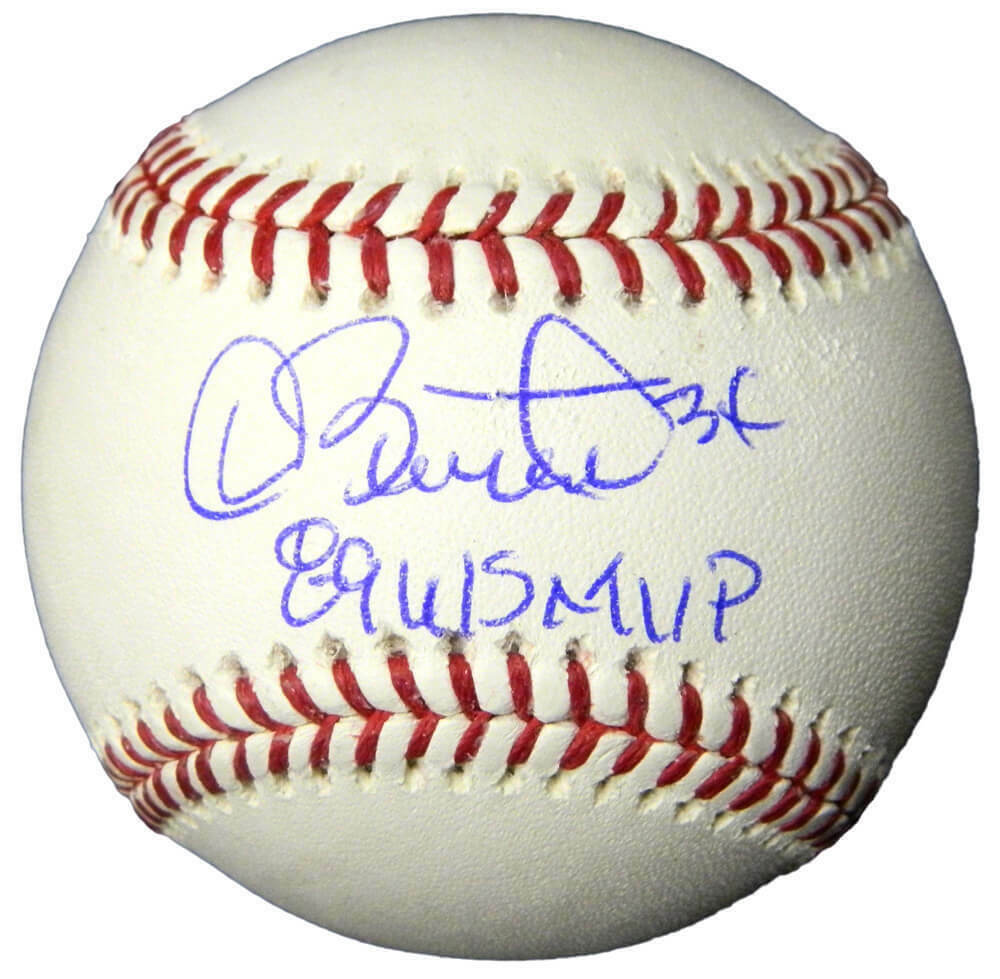 Dave Stewart signed Rawlings official MLB baseball with '89 WS MVP' inscription. Item comes with a Schwartz Sports Memorabilia tamper-proof numbered hologram and Certificate of Authenticity which can be verified online.