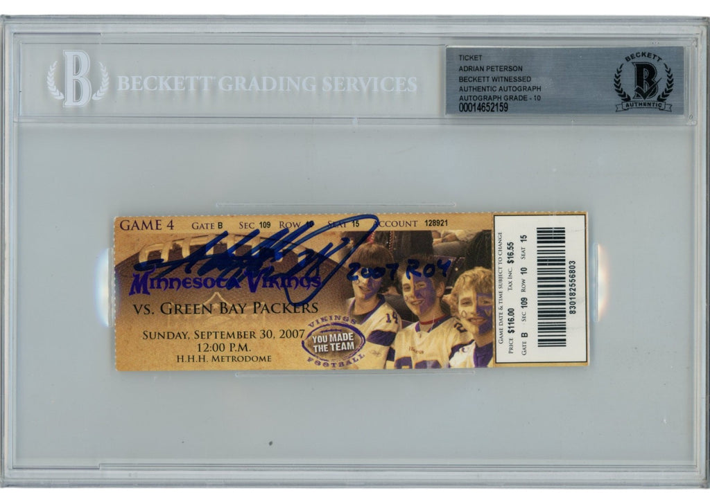 Adrian Peterson Autographed Minnesota Vikings 07ROY Slabbed Ticket Beckett 36363