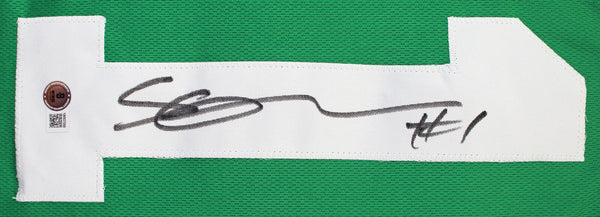 This Autographed Green Pro Style Jersey has been Personally Signed by Ahmad "Sauce" Gardner of the New York Jets. This item is 100% Authentic to include a hologram by Beckett Authentication Services. This item will come with an affixed Beckett Authentication Services (BAS) authentication sticker, which includes a scannable QR code to verify authenticity. Please note that Beckett no longer provides serial-numbered COA cards, and the attached BAS sticker will serve as the complete authentication for this item. This is a BAS Witnessed Protection Program item which means a Beckett Authentication Service representative was present when this item was being signed. We conducted an autograph signing with Ahmad "Sauce" Gardner where multiples of the same item were signed. While the photographs are representative of this item, the size, placement and strength of the signature may vary. Each item is hand signed, therefore, each autograph is unique. This item can be verified through BAS Witnessed. This is a X-Large sized, non-branded, custom-stitched Jersey.
