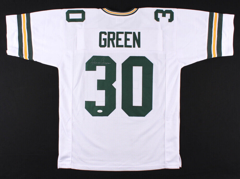 Custom on-field style jersey, everything is sewn on, size XL. Hand-signed in black felt-tip pen by Ahman Green. The lot / autograph(s) includes an official James Spence Authentication (JSA) hologram and matching COA for authenticity purposes. The signing of this item was witnessed by JSA.Authentication: JSA COA