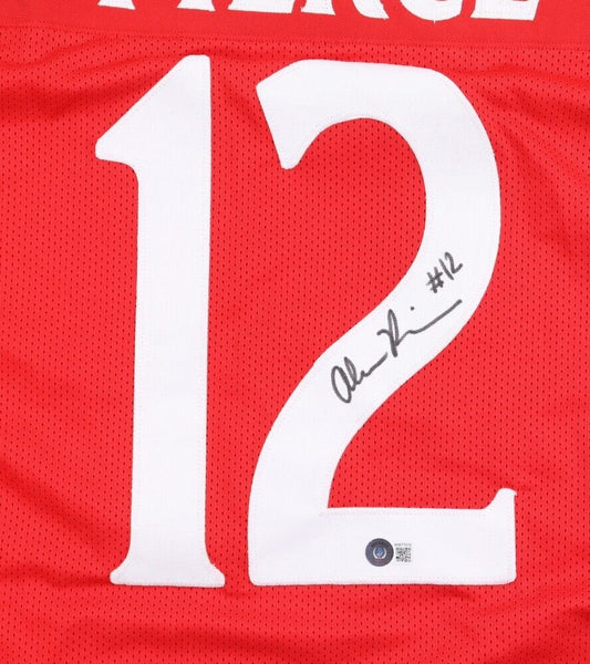 Custom on-field style jersey. Everything is sewn on, size XL. Hand-signed by Alec Pierce.The lot / autograph(s) includes an official Beckett Authentication Services serially numbered hologram for authenticity purposes. The signing of this item was witnessed by Beckett.Authentication: Beckett Hologram
