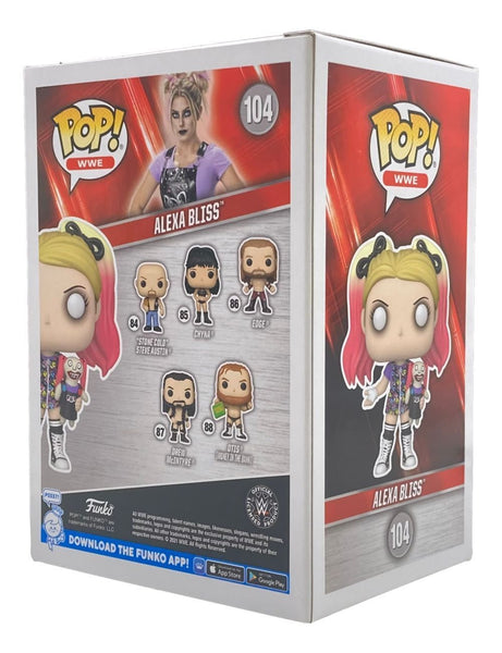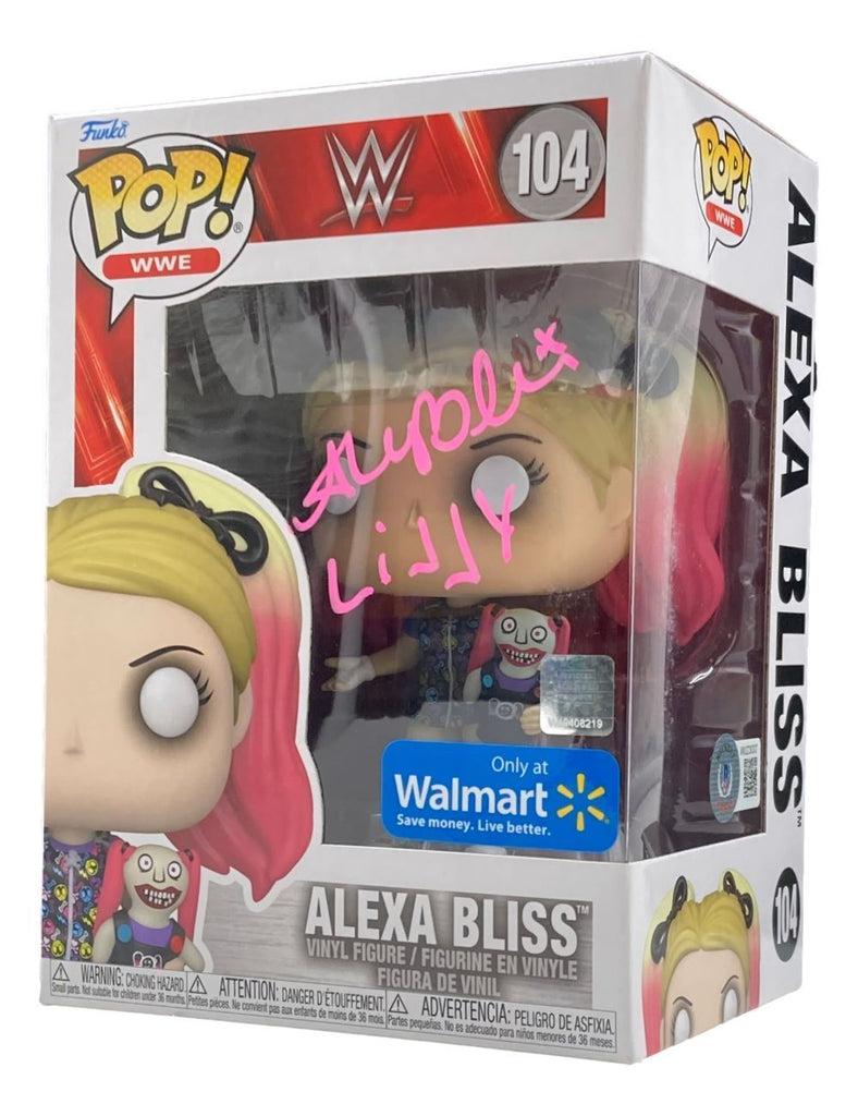 Featured is an Alexa Bliss signed WWE Funko Pop #104, inscribed "Lilly". This pop has been hand signed by Bliss and comes with the Beckett witnessed hologram and certificate of authenticity. This pop would make a great addition to any sports memorabilia collection!. SPECIFICATIONS Autographed By: Alexa Bliss Team: Sport: Wrestling Authentication: Beckett Grading Services