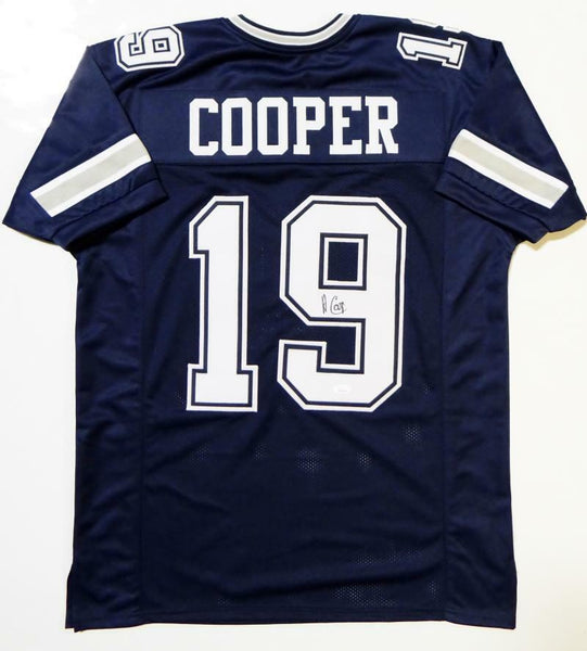Amari Cooper Autographed Blue Pro Style Jersey- JSA W Authentication *Black *9 THIS IS NOT AN NFL JERSEY. THIS HAS NO TAGS, NO LOGOS, NO EMBLEMS. This is a Hand Autographed Jersey of Amari Cooper. This is Custom Made (Non Name Brand) Authentic Style (Stitched Letters and Numbers). This item has a James Spence Witness Protection Authentication, which comes with a JSA #'ed Sticker and a JSA COA. You can view this item on the SpenceLOA website, it shows when and where the item was signed. It was signed either at a public autograph appearance or a private signing. This is a stock photo of the item. Although you may not receive this exact item, the item you receive is virtually identical and brand new in great shape.