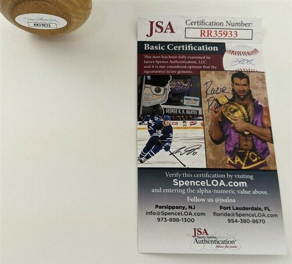 This autographed Rawlings baseball bat has been personally hand-signed by Andruw Jones of the Atlanta Braves. This autograph is certified by James Spence Authentication (JSA). It comes with the numbered hologram and matching Certificate of Authenticity.