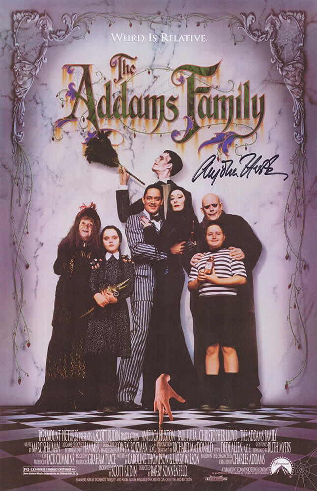 Anjelica Huston signed The Addams Family 11x17 movie poster. Item comes with a Schwartz Sports Memorabilia tamper-proof numbered hologram and Certificate of Authenticity which can be verified online.