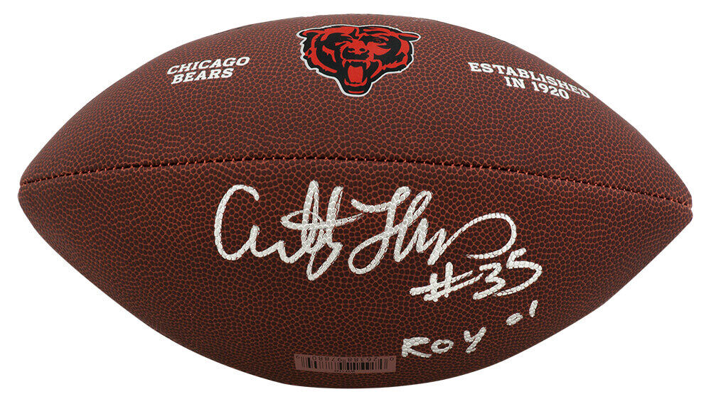Anthony Thomas signed Chicago Bears brown logo football with 'ROY 01' inscription. Item comes with a Schwartz Sports Memorabilia tamper-proof numbered hologram and Certificate of Authenticity which can be verified online.