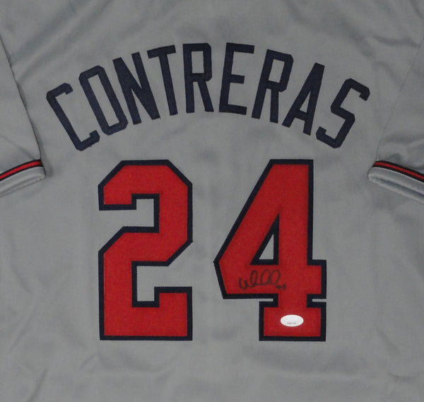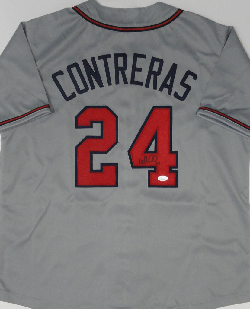 Custom replica jersey of Atlanta Braves World Series Champ WILLIAM CONTRERAS. This jersey is signed with Black Sharpie and is size XL with all letters and numbers sewn in. This item was signed at a private signing in our store and would make a great addition to any Braves collection. This autograph is guaranteed to be 100% authentic and will include a COA from JSA (James Spence Authentication).