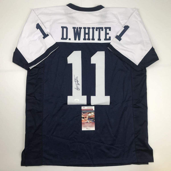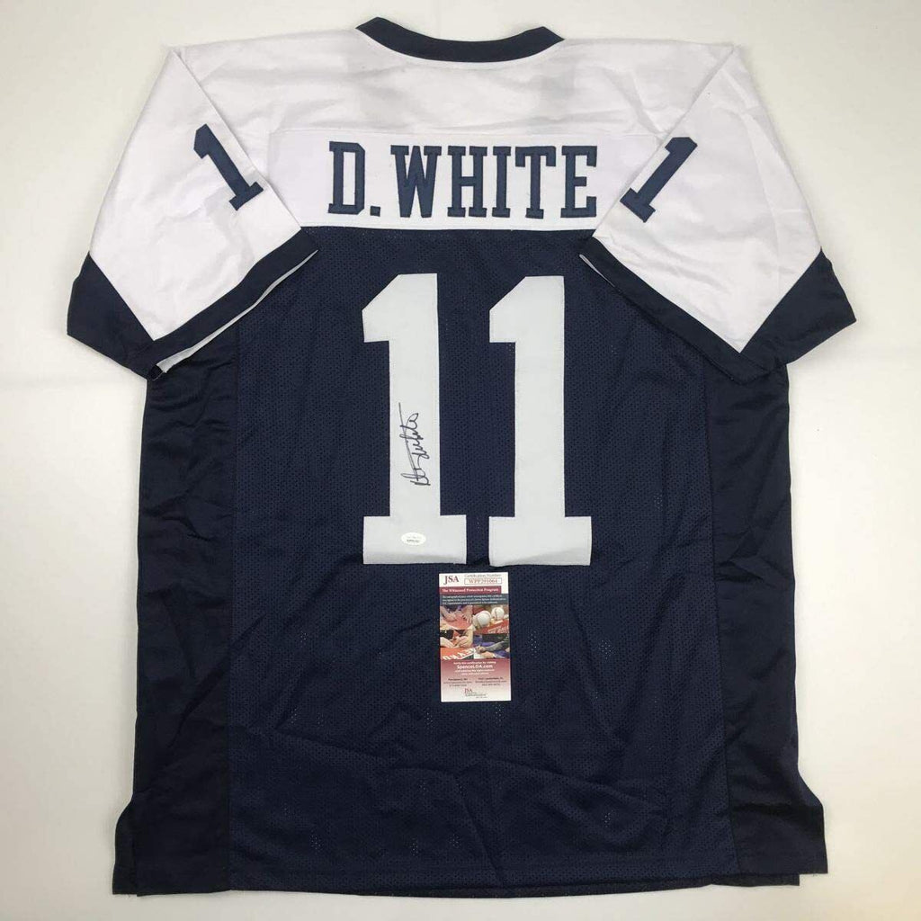 Autographed/Signed Danny White Dallas Thanksgiving Day Football Jersey JSA COA This is a custom jersey and was not manufactured by or in any manner associated with any professional sports league or manufacturer. This custom jersey carries no professional sports league designation. The item is intended to be an autographed collectible. Reference of team in the title is to allow the purchaser a point of association. The custom jersey displays the name, number and authenticated signature of the player. This item in no way is affiliated with or connected to any professional sports organization. The autograph, as always is guaranteed to be authentic and has been certified as authentic by a third-party, trusted authenticator. Size is XL unless otherwise noted.