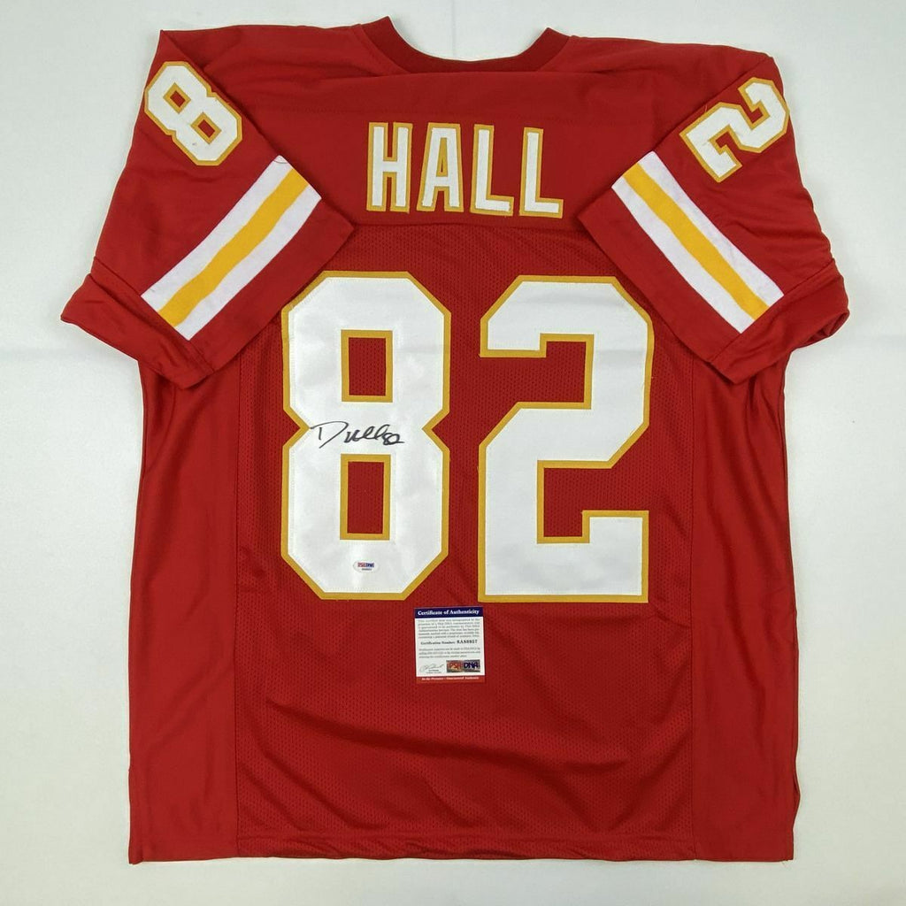 Autographed/Signed DANTE HALL Kansas City Red Football Jersey PSA/DNA COA Auto This is a custom jersey and was not manufactured by or in any manner associated with any professional sports league or manufacturer. This custom jersey carries no professional sports league designation. The item is intended to be an autographed collectible. Reference of team in the title is to allow the purchaser a point of association. The custom jersey displays the name, number and authenticated signature of the player. This item in no way is affiliated with or connected to any professional sports organization. The autograph, as always is guaranteed to be authentic and has been certified as authentic by a third-party, trusted authenticator. Size is XL unless otherwise noted.