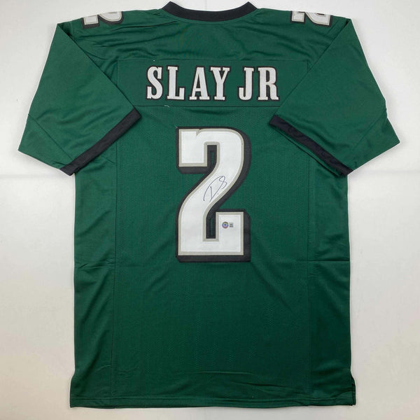 Autographed/Signed Darius Slay Jr. #2 Philadelphia Green Jersey Beckett BAS COA Jersey has no brand names or logos. This is a custom jersey and was not manufactured by or in any manner associated with any professional sports league or manufacturer. This custom jersey carries no professional sports league designation. The item is intended to be an autographed collectible. The custom jersey displays the name and number of the player. This item in no way is affiliated with or connected to any professional sports organization. Size is XL.