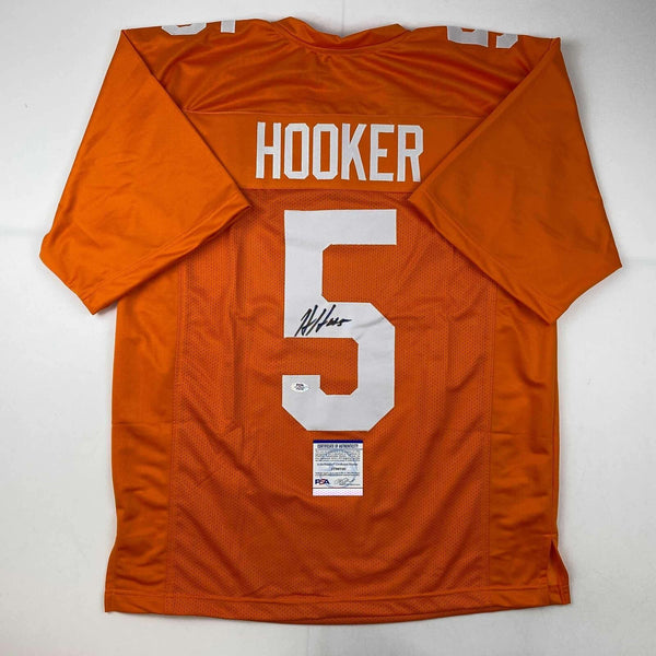 Autographed/Signed Hendon Hooker Tennessee Orange College Jersey PSA/DNA COA Jersey has no brand names or logos. This is a custom jersey and was not manufactured by or in any manner associated with any professional sports league or manufacturer. This custom jersey carries no professional sports league designation. The item is intended to be an autographed collectible. The custom jersey displays the name and number of the player. This item in no way is affiliated with or connected to any professional sports organization. Size is XL.