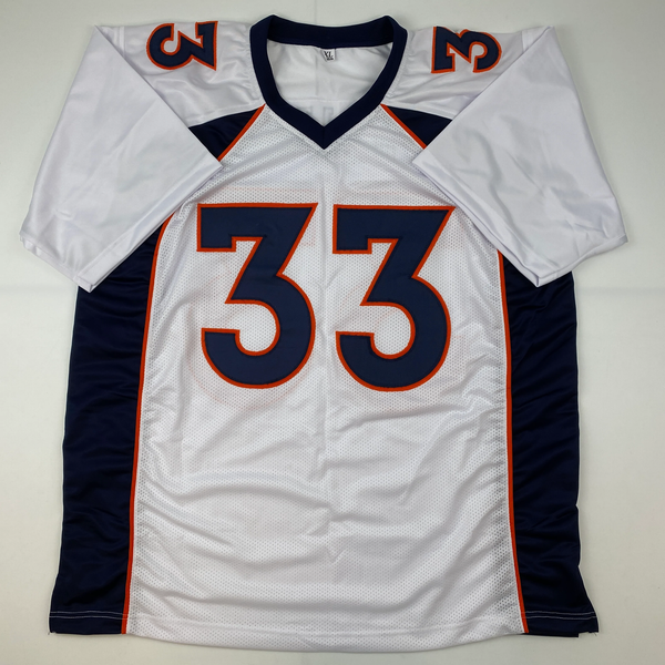 Autographed/Signed Javonte Williams Denver White Football Jersey Beckett BAS COA