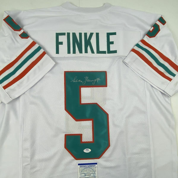 Autographed/Signed SEAN YOUNG Ray Finkle Ace Ventura Miami White Jersey PSA COA This is a custom jersey and was not manufactured by or in any manner associated with any professional sports league or manufacturer. This custom jersey carries no professional sports league designation. The item is intended to be an autographed collectible. The custom jersey displays the name, number and authenticated signature of the player. This item in no way is affiliated with or connected to any professional sports organization. The autograph, as always is guaranteed to be authentic and has been certified as authentic by a third-party, trusted authenticator. Size is XL unless otherwise noted.