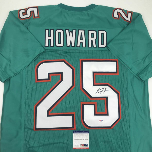 Autographed/Signed XAVIEN HOWARD Miami Teal Football Jersey PSA/DNA COA Auto This is a custom jersey and was not manufactured by or in any manner associated with any professional sports league or manufacturer. This custom jersey carries no professional sports league designation. The item is intended to be an autographed collectible. Reference of team in the title is to allow the purchaser a point of association. The custom jersey displays the name, number and authenticated signature of the player. This item in no way is affiliated with or connected to any professional sports organization. The autograph, as always is guaranteed to be authentic and has been certified as authentic by a third-party, trusted authenticator. Size is XL unless otherwise noted.