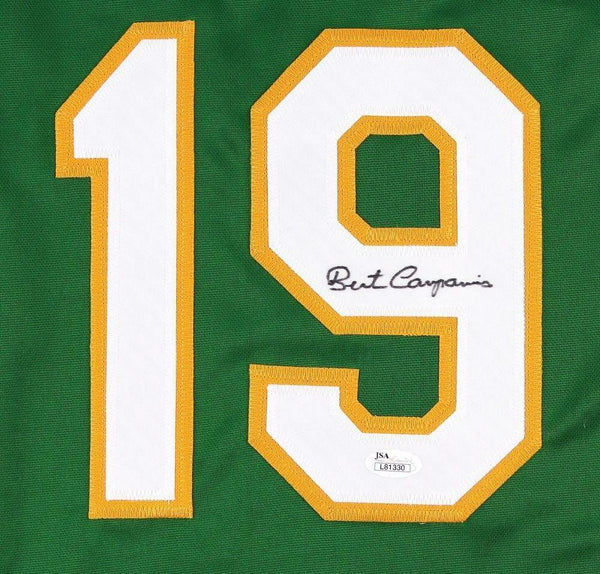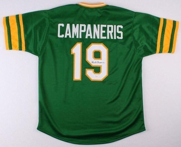 Custom on-field style jersey. Everything is sewn on, size XL. Hand-signed in black felt tip pen by Bert Campaneris (A's). The autograph includes an official James Spence Authentication (JSA) hologram and matching COA for authenticity purposes. Authentication: JSA COA