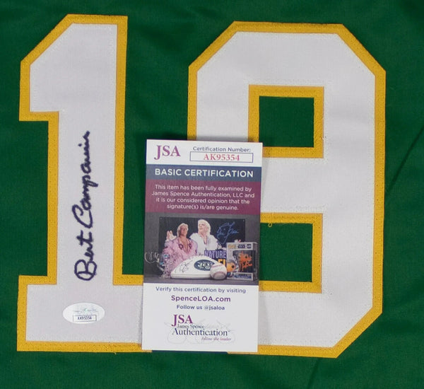 Custom on-field style jersey. Everything is sewn on, size XL. Hand-signed in black felt tip pen by Bert Campaneris (A's).The autograph includes an official James Spence Authentication (JSA) hologram and matching COA for authenticity purposes. Authentication: JSA COA