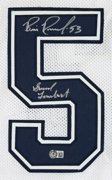 Custom on-field style jersey. Everything is sewn on, size adult XL. Has been hand-signed by Bill Romanowski / Guard Lambert.The Longest Yard is a 2005 American sports comedy film directed by Peter Segal. It is a remake of 1974's The Longest Yard, it stars Adam Sandler as a washed-up former professional quarterback who, in exchange for a reduced prison sentence, is forced to assemble a prisoner football team to play against the prison's guards. The film co-stars Chris Rock, James Cromwell, Nelly, and Burt Reynolds, who played Sandler's role in the original. The Movie also stared former WWE stars Steve Austin & Kevin Nash, former NFL & WWE star Bill Goldberg, ex-NFL Players Bill Romanowski, Terry Crews, Michael Irvin, and Brian Bosworth.The lot / autograph(s) includes an official Beckett Authentication Services serially numbered hologram for authenticity purposes. The signing of this item was witnessed by Beckett.Authentication: Beckett Hologram