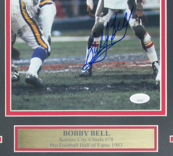 Bobby Bell Kansas City Chiefs Signed/Autographed 8x10 Photo Framed. The outer frame size is 13 inches x 16 inches. This photo is authenticated by JSA and includes their Tamper-proof Sticker and Certificate of Authenticity.