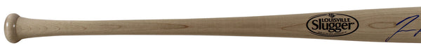This Autographed Blonde Louisville Slugger Pro Stock Baseball Bat has been Personally Signed by Ronald Acuna Jr. of the Atlanta Braves. This item is 100% Authentic to include a hologram by Beckett Authentication Services. This item will come with an affixed Beckett Authentication Services (BAS) authentication sticker, which includes a scannable QR code to verify authenticity. Please note that Beckett no longer provides serial-numbered COA cards, and the attached BAS sticker will serve as the complete authentication for this item. This is a BAS Witnessed Protection Program item which means a Beckett Authentication Service representative was present when this item was being signed. We conducted an autograph signing with Ronald Acuna Jr. where multiples of the same item were signed. While the photographs are representative of this item, the size, placement and strength of the signature may vary. Each item is hand signed, therefore, each autograph is unique. This item can be verified through BAS Witnessed.