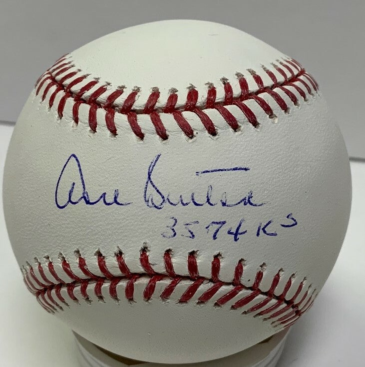 An official MLB baseball autographed by Milwaukee Brewers Hall of Famer DON SUTTON. Signature is in blue ball point pen on the Sweet Spot and includes the inscription "3574 K's". SUTTON was a member of the 300 Win and 3000 Strike Out Club. He was inducted into the Hall of Fame and was a member of the Dodgers and Brewers. This would make a great addition to any Sutton collection! This item was signed in our store during a Public signing. It is guaranteed to be 100% authentic and will include COA with matching serial numbered holograms.