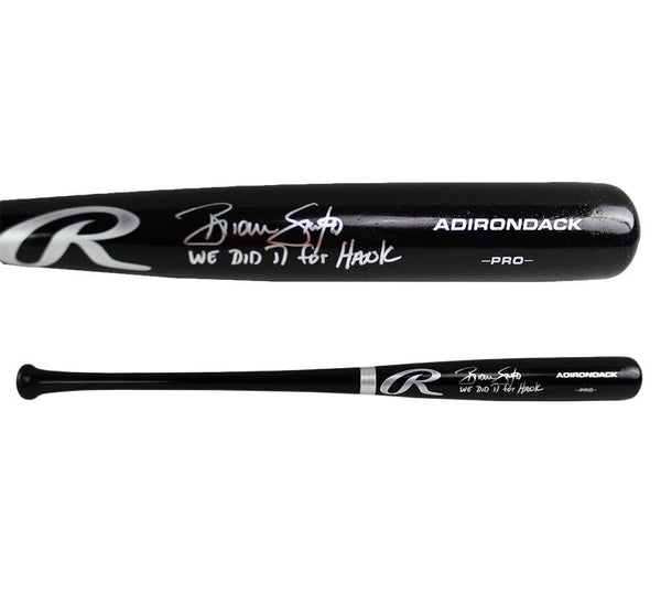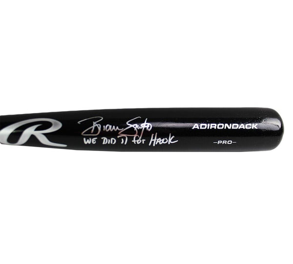 An Atlanta Braves Rawlings Black MLB Bat hand signed by Brian Snitker. The item and signature are in excellent condition. In addition to signing his name, Brian also inscribed "We Did It For Hank" on the item. Brian is a World Series champion, and a NL Manager of the Year (2018). Brian has been a coached and the Manager of the Braves. AUTHENTICATION: The item is accompanied by a Certificate of Authenticity - Brian Snitker Exclusive Serial Numbered and Databased Hologram - Picture of Brian from the signing
