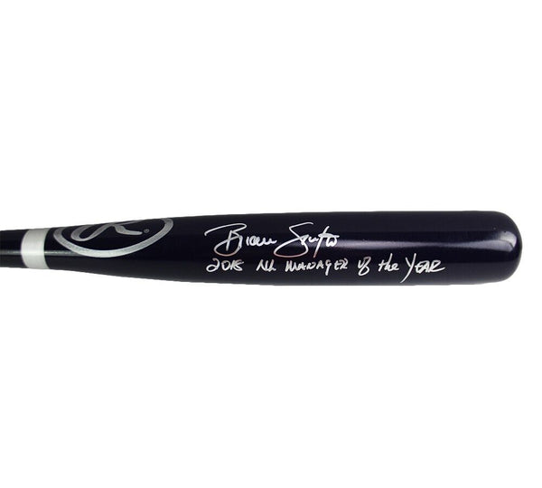 An Atlanta Braves Rawlings Navy Blue MLB Bat hand signed by Brian Snitker. The item and signature are in excellent condition. In addition to signing his name, Brian also inscribed "NL MOY" on the item. Brian is a World Series champion, and a NL Manager of the Year (2018). Brian has been a coached and the Manager of the Braves. AUTHENTICATION: The item is accompanied by a Certificate of Authenticity - Brian Snitker Exclusive Serial Numbered and Databased Hologram - Picture of Brian from the signing