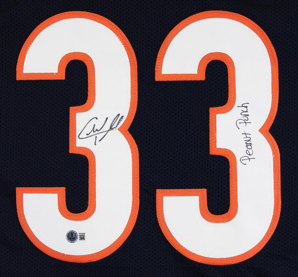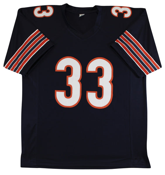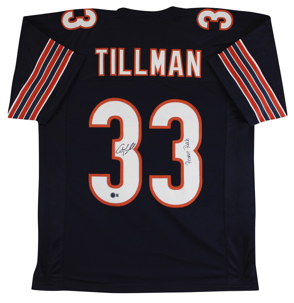 This Autographed Navy Pro Style Jersey with the inscription of "Peanut Punch" has been Personally Signed by Charles Tillman of the Chicago Bears. This item is 100% Authentic to include a hologram by Beckett Authentication Services. This item will come with an affixed Beckett Authentication Services (BAS) authentication sticker, which includes a scannable QR code to verify authenticity. Please note that Beckett no longer provides serial-numbered COA cards, and the attached BAS sticker will serve as the complete authentication for this item. This is a BAS Witnessed Protection Program item which means a Beckett Authentication Service representative was present when this item was being signed. We conducted an autograph signing with Charles Tillman where multiples of the same item were signed. While the photographs are representative of this item, the size, placement and strength of the signature may vary. Each item is hand signed, therefore, each autograph is unique. This item can be verified through BAS Witnessed. This is a X-Large sized, non-branded, custom-stitched Jersey.