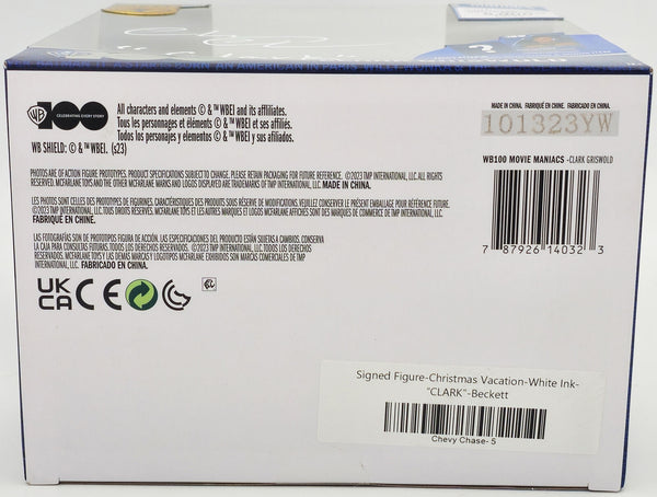 This is a McFarlane Toys Movie Maniacs Action Figure that has been hand signed by Chevy Chase. This item was inscribed "Clark." This item has been witnessed and certified authentic by Beckett Authentication (BAS) and comes with their tamper-proof witness sticker.