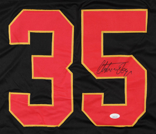 Custom on-field style jersey. Everything is sewn on, size XL. Hand-signed in black felt-tip pen by Christian Okoye. The autograph includes an official James Spence Authentication (JSA) hologram and matching COA for authenticity purposes. The signing of this item was witnessed by JSA.Authentication: JSA COA