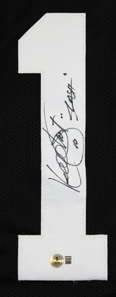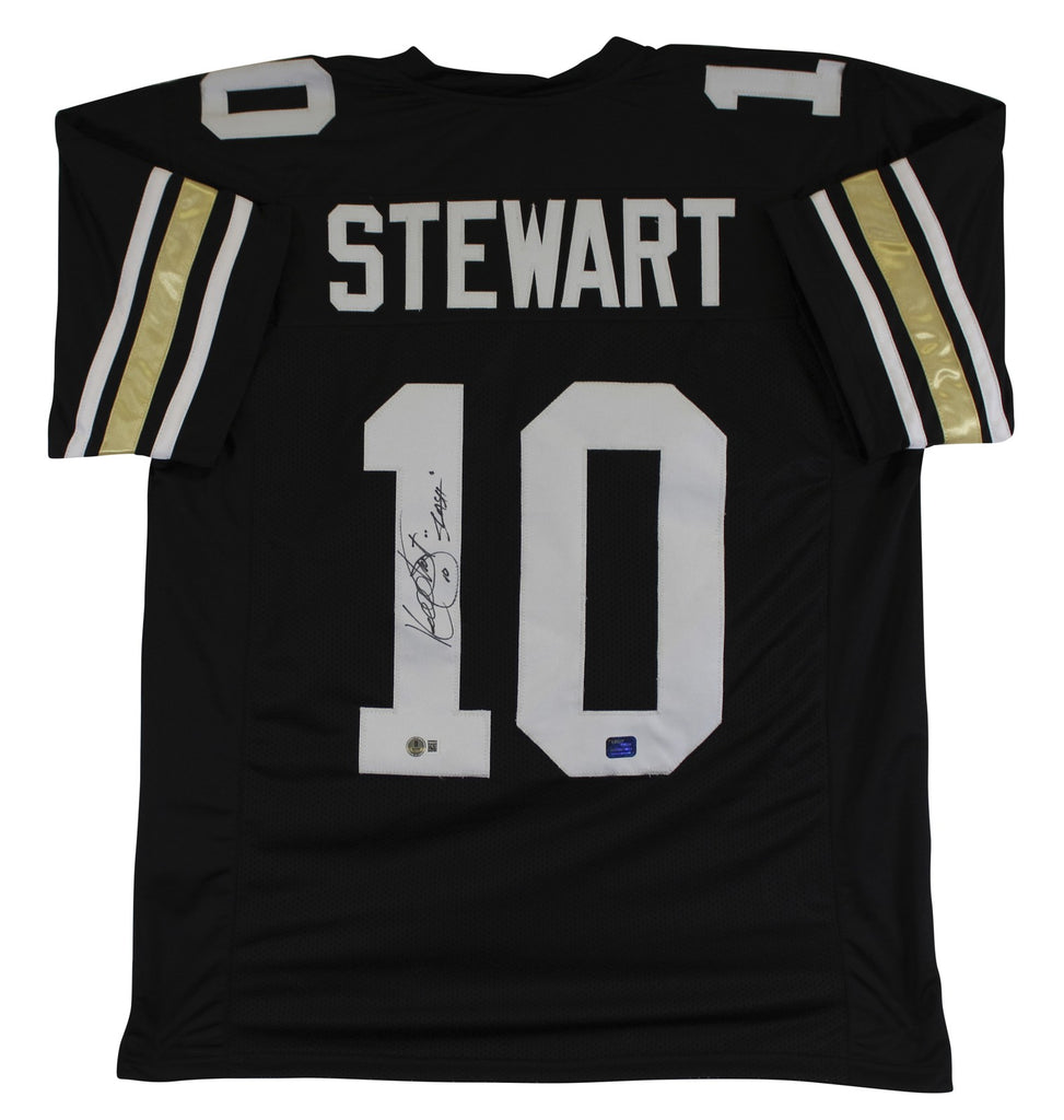 This Autographed Black Pro Style Jersey with the inscription of "Slash" has been Personally Signed by Kordell Stewart of the Colorado Buffaloes. This item is 100% Authentic to include a hologram by Beckett Authentication Services. This item will come with an affixed Beckett Authentication Services (BAS) authentication sticker, which includes a scannable QR code to verify authenticity. Please note that Beckett no longer provides serial-numbered COA cards, and the attached BAS sticker will serve as the complete authentication for this item. This is a BAS Witnessed Protection Program item which means a Beckett Authentication Service representative was present when this item was being signed. The authenticity can be verified on Beckett Authentication Services website. This is a X-Large sized, non-branded, custom-stitched Jersey.