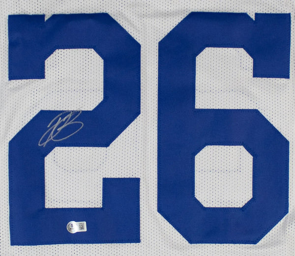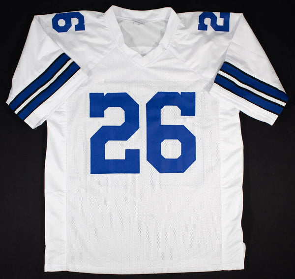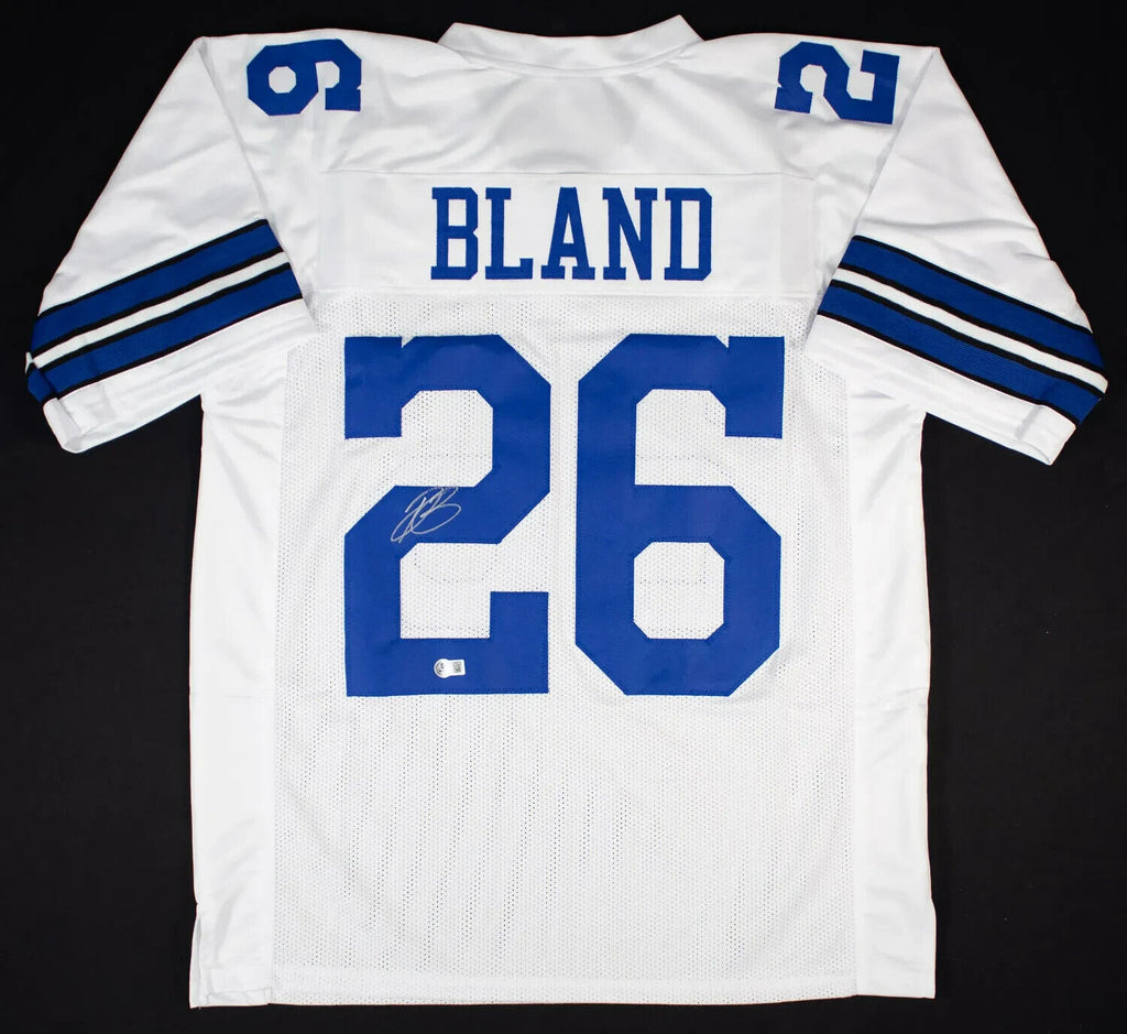This autographed custom on-field style adult XL jersey has been personally hand-signed by Daron Bland of the Dallas Cowboys.This autograph is certified by Beckett Authentication Services (BAS) Witness Certification. That means that a Beckett representative was present when this item was signed. It comes with the numbered authentication hologram with a QR code that verifies the authentication on the Beckett website.Custom on-field style jerseys are a more affordable option for autograph seekers. These jerseys do not have any brand name or tags and are made in the Philippines. They feature stitched on names and numbers and are made to look very similar to the on-field jerseys that the players wear. These custom jerseys are very commonly used in the memorabilia industry.