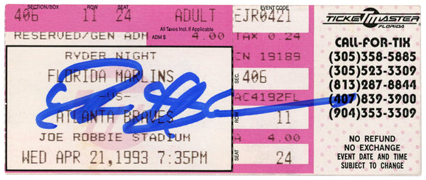 Deion Sanders Autographed Atlanta Braves 4/21/1993 @ Marlins Ticket BAS 37179