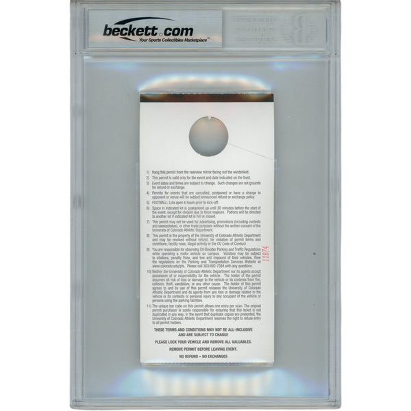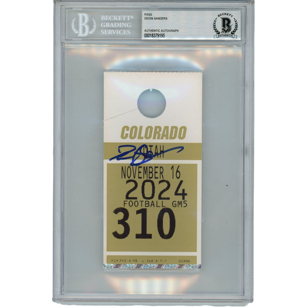 The number in the listing title is just an inventory sku for our records and is not the authentication number. The item pictured is the exact item you will receive, please see photos for condition. This is a Colorado Buffaloes vs Utah Utes Slabbed Parking Pass dated November 16, 2024 that was personally autographed by Deion Sanders. Includes a certificate of authenticity / hologram from Beckett Authentication Services (BAS) and Denver Autographs (DEN). FREE SHIPPING within the USA on orders over $10!