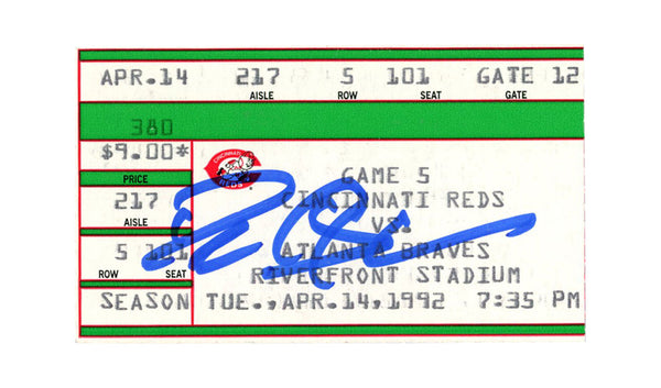 Deion Sanders Signed Atlanta Braves 4/14/1992 vs Reds Ticket BAS 37264 The number in the listing title is just an inventory sku for our records and is not the authentication number. The item pictured is a stock photo unless otherwise noted. This is a authentic ticket stub that was personally autographed by Deion Sanders. Includes a certificate of authenticity from Beckett Authentication Services (BAS) and Denver Autographs.