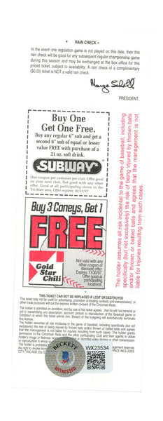 Deion Sanders Signed Cincinnati Reds 5/15/1997 vs Dodgers Ticket BAS 37235 The number in the listing title is just an inventory sku for our records and is not the authentication number. The item pictured is a stock photo unless otherwise noted. This is a authentic ticket stub that was personally autographed by Deion Sanders. Includes a certificate of authenticity from Beckett Authentication Services (BAS) and Denver Autographs.