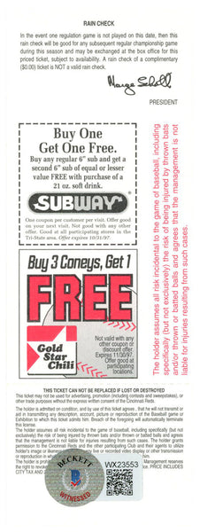 Deion Sanders Signed Cincinnati Reds 6/13/1997 vs White Sox Ticket BAS 37204