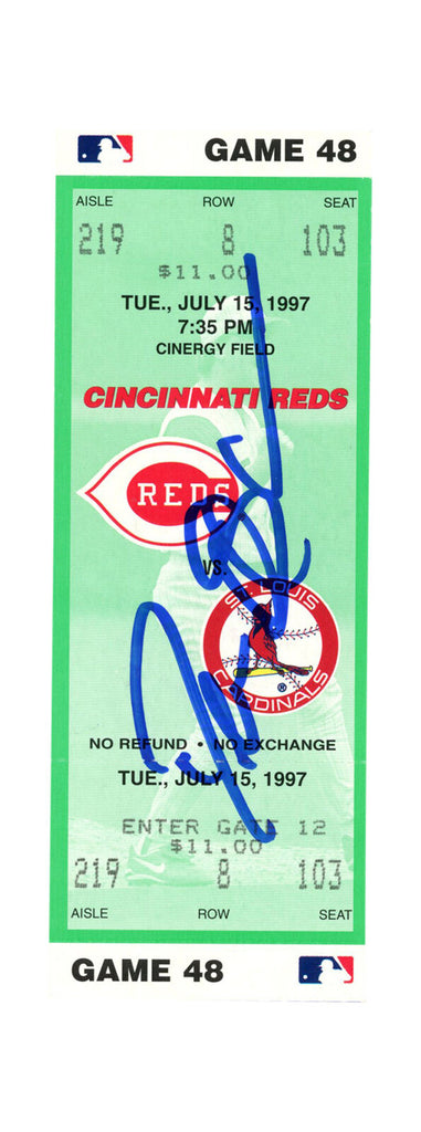 Deion Sanders Signed Cincinnati Reds 7/15/1997 vs Cardinals Ticket BAS 37219 The number in the listing title is just an inventory sku for our records and is not the authentication number. The item pictured is a stock photo unless otherwise noted. This is a authentic ticket stub that was personally autographed by Deion Sanders. Includes a certificate of authenticity from Beckett Authentication Services (BAS) and Denver Autographs.