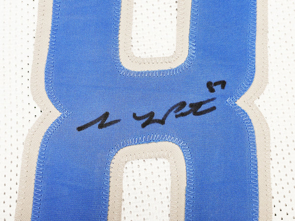 This is a White Jersey that has been hand signed by Sam LaPorta. This is a custom jersey with no name brand. The approximate size is XL. It has nice sewn in name and numbers. This item has been witnessed and certified authentic by Beckett Authentication (BAS) and comes with their tamper-proof witness sticker.