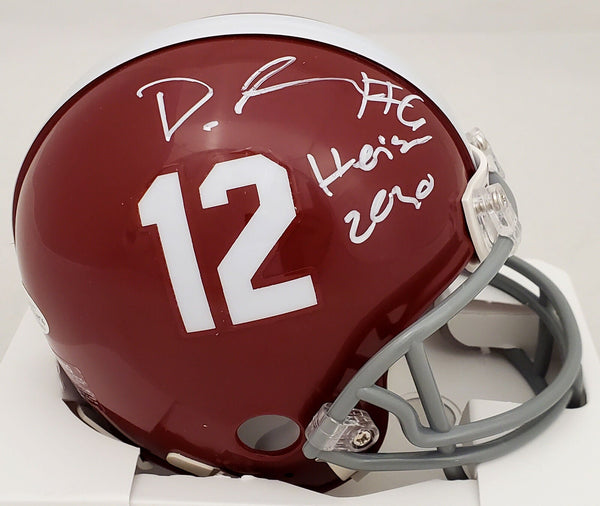 This is an Alabama Crimson Tide Mini Helmet that has been hand signed by Devonta Smith. Smith inscribed this item "Heisman 2020." This item has been certified authentic by Beckett (BAS) and comes with their tamper-proof sticker and matching certificate of authenticity.