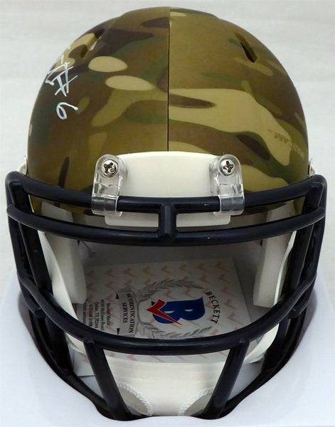This is a Alabama Crimson Tide Camo Speed Mini Helmet that has been hand signed by Devonta Smith. This item has been certified authentic by Beckett Authentication (BAS) and comes with their tamper-proof sticker and matching certificate of authenticity. NOTE: Because each Camo helmet is hand-dipped using water-transfer technology there may be slight imperfections.
