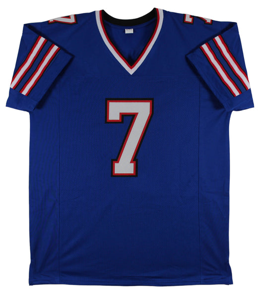 This Autographed Blue Pro Style Jersey has been Personally Signed by Doug Flutie of the Buffalo Bills. This item is 100% Authentic to include a hologram by Beckett Authentication Services. This item will come with an affixed Beckett Authentication Services (BAS) authentication sticker, which includes a scannable QR code to verify authenticity. Please note that Beckett no longer provides serial-numbered COA cards, and the attached BAS sticker will serve as the complete authentication for this item. This is a BAS Witnessed Protection Program item which means a Beckett Authentication Service representative was present when this item was being signed. We conducted an autograph signing with Doug Flutie where multiples of the same item were signed. While the photographs are representative of this item, the size, placement and strength of the signature may vary. Each item is hand signed, therefore, each autograph is unique. This item can be verified through BAS Witnessed. This is a X-Large sized, non-branded, custom-stitched Jersey.