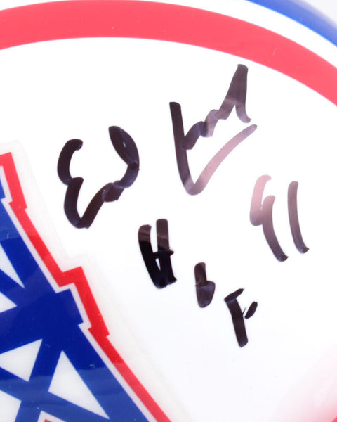 Earl Campbell Autographed Houston Oilers 81-96 Mini Helmet w/HOF - Beckett W Hologram *Black This is an Earl Campbell of The Houston Oilers hand autographed Riddell Football 81-96 Throwback Mini Helmet. Inscribed HOF. This item has a Beckett Witnessed Authentication, which comes with a Beckett numbered hologram and a QR code for verification. You can view this item on the Beckett website, it shows when and where the item was signed. It was signed either at a public autograph appearance or a private signing. This is a stock photo of the item. Although you may not receive this exact item, the item you receive is virtually identical, brand new, and in great shape.
