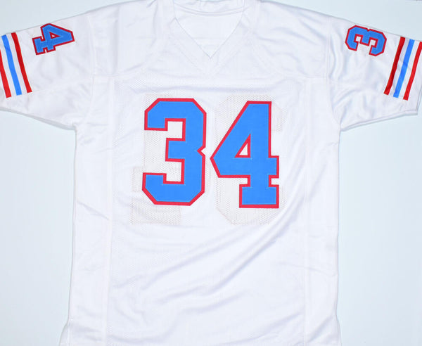 Earl Campbell Autographed White Pro Style Jersey- Beckett W Hologram *Black THIS IS NOT AN NFL JERSEY. THIS HAS NO TAGS, NO LOGOS, NO EMBLEMS. This is a hand autographed Jersey of Earl Campbell on a Custom Made (non name brand) Authentic Style Jersey with stitched letters and numbers. This item has a Beckett Witnessed Authentication, which comes with a numbered hologram and a QR code for verification. You can view this item on the Beckett Authentication website, it shows when and where the item was signed. It was signed either at a public autograph appearance or a private signing. This is a stock photo of the item. Although you may not receive this exact item, the item you receive is virtually identical and brand new in great shape. Jersey size is XL.
