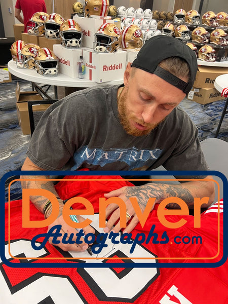 The number in the listing title is just an inventory sku for our records and is not the authentication number. The item pictured is a stock photo unless otherwise noted. This is a Pro Style Size XL 2 layer Red Jersey with sewn on numbers that was personally autographed by George Kittle. Includes a certificate of authenticity from Beckett Authentication Services (BAS) and Denver Autographs.