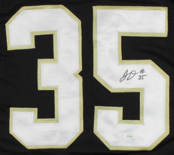 Custom on-field style jersey. Everything sewn on, size XL. Hand-signed by Jamel Dean.The lot / autograph(s) includes an official James Spence Authentication (JSA) hologram and matching COA for authenticity purposes. The signing of this item was witnessed by JSA.Authentication: JSA COA