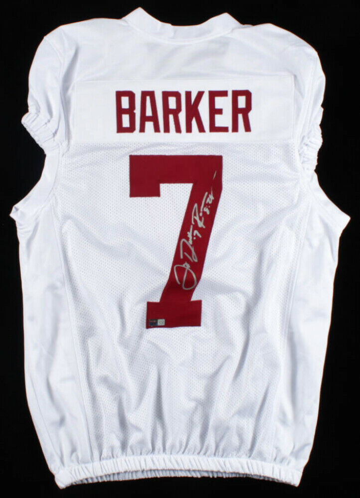 Custom on-field style jersey. Everything sewn on, size XL. Hand-signed by Jay Barker.The lot / autograph(s) includes an official TriStar hologram for authenticity purposes.Authentication: TriStar Hologram