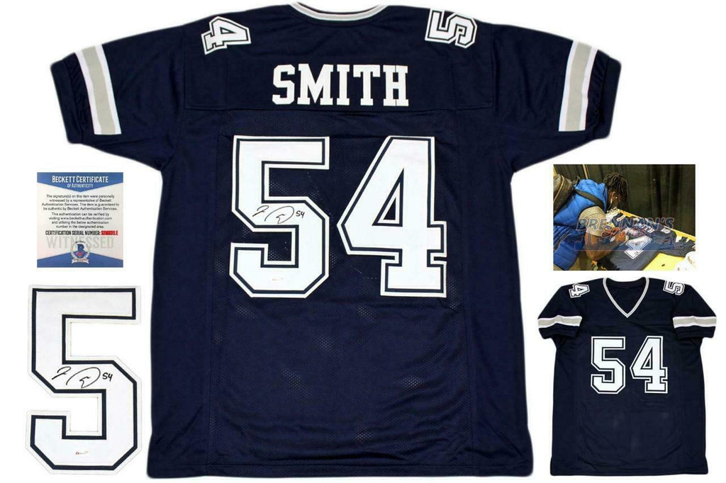 This signed item is brand new without tags or logos. The jersey is custom sewn in a size (XL). All the letters and numbers are sewn on! This item will make a great gift or a great addition to any collection! ATHLETE: Jaylon Smith ITEM: Custom Sewn Jersey AUTHENTICATION: This item comes with a Beckett "Witnessed" Certificate of Authenticity and serial #'ed hologram affixed to the item. To ensure authenticity, the hologram can be reviewed online. This process helps to ensure that the product purchased is authentic and eliminates any possibility of duplication or fraud. NOTE: All of our autographed jerseys are custom jerseys, unless otherwise noted. Our custom jerseys are NON-BRANDED, have NO logos, NO tags, NO patches, NO emblems. All letters and numbers are SEWN-ON. The non-branded jerseys are made specifically for the player(s) to sign, for collectible purposes.
